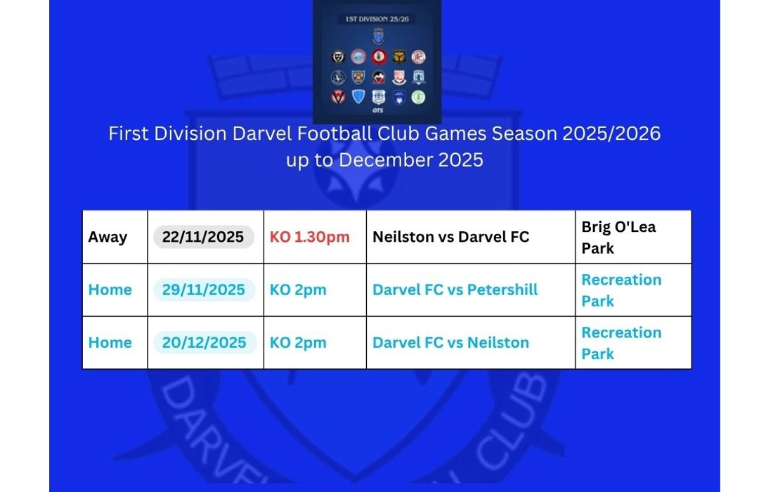 Welcome to Darvel Football Club. We are a Scottish football club based in the town of Darvel, Ayrshire. Nicknamed "The Vale" and formed in 1889, the club play at Recreation Park, and compete in the West of Scotland Football League - First Division 25/26.
